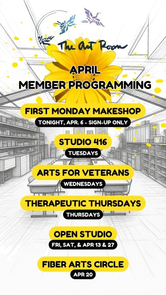 Art Room Members: bookmark the calendar and stay up-to-date on our programming, open studio time, and other activities happening at our space!